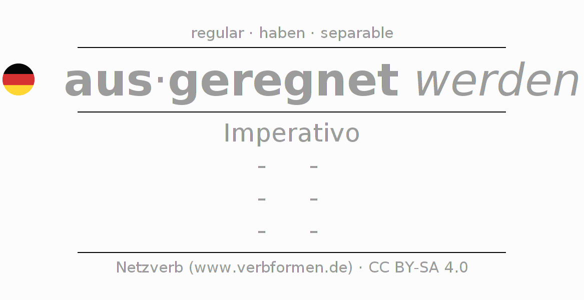 El verbo ausregnen, conjugado completamente en todas las personas y números gramaticales en Imperativo Presente.