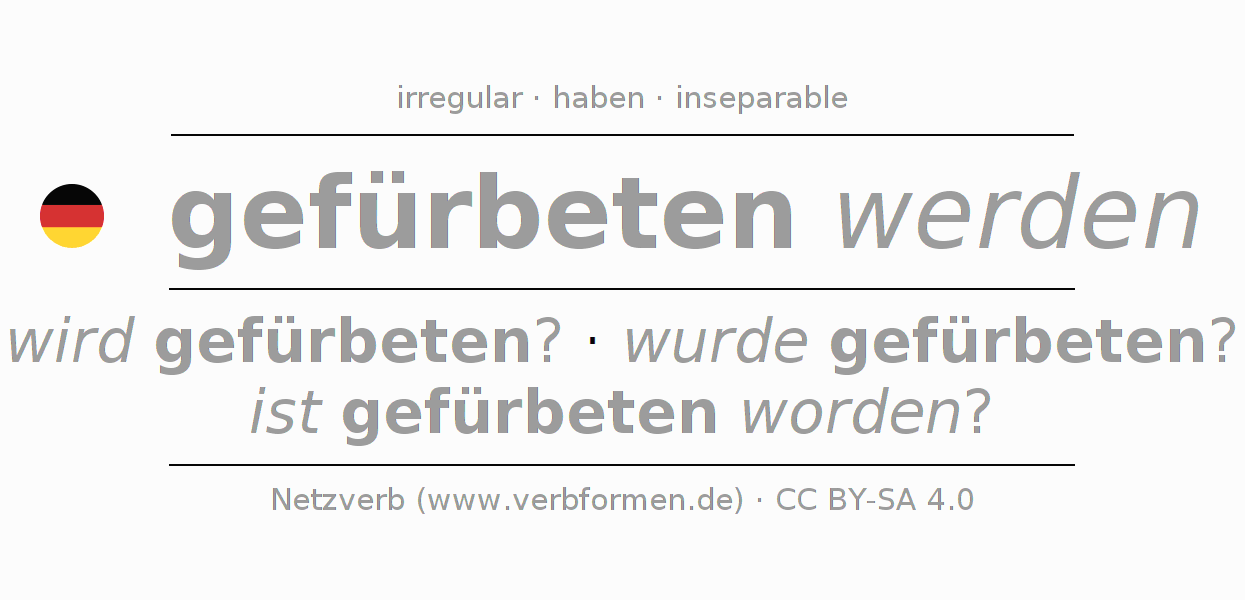 El verbo fürbitten, conjugado completamente en todas las personas y números gramaticales en Imperativo Presente.