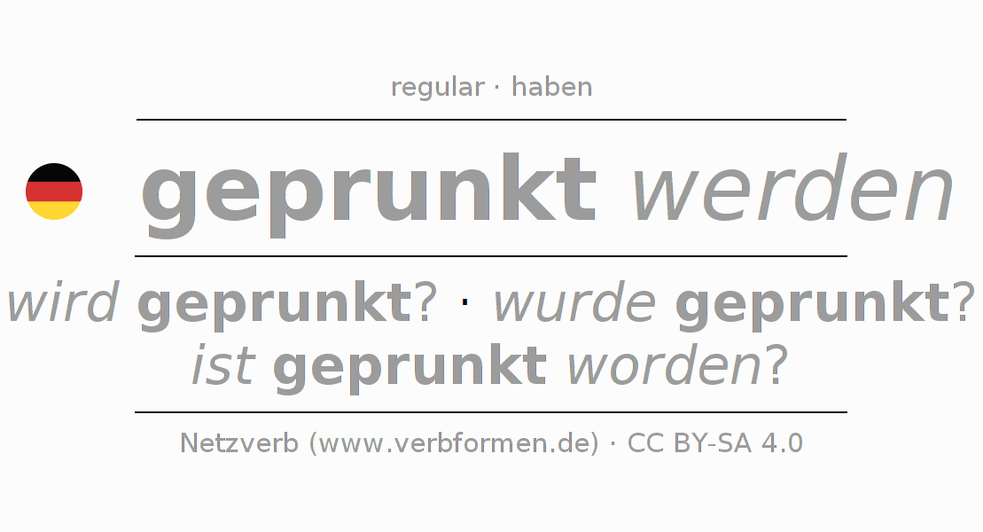 El verbo prunken, conjugado completamente en todas las personas y números gramaticales en Imperativo Presente.
