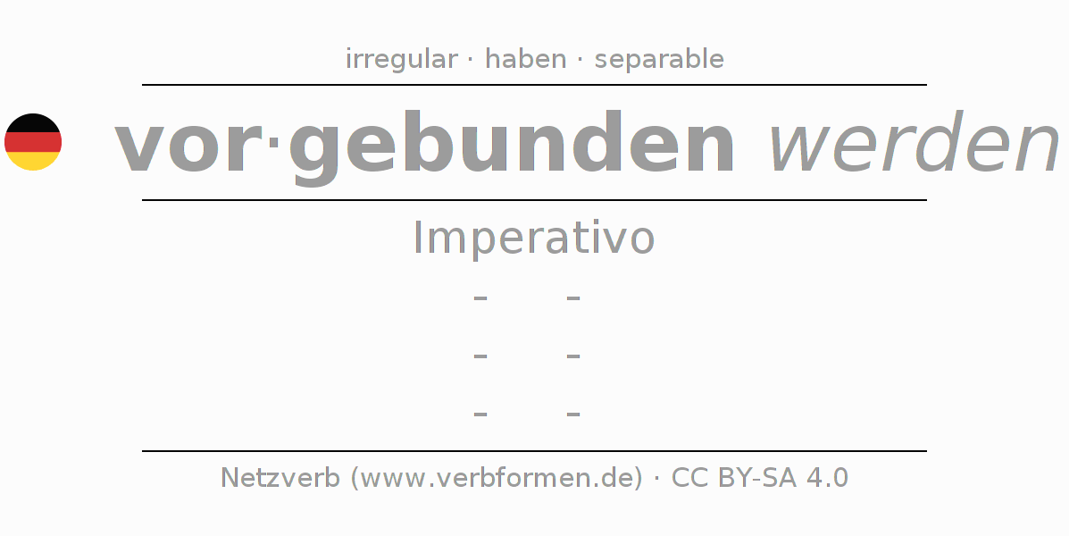 El verbo vorbinden, conjugado completamente en todas las personas y números gramaticales en Imperativo Presente.