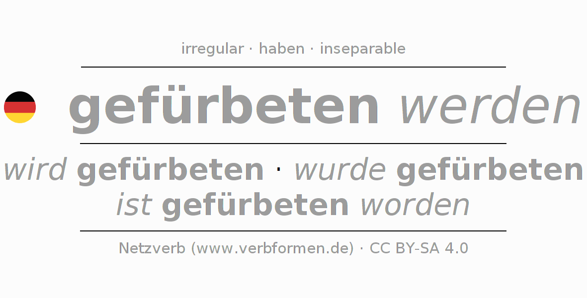 El verbo fürbitten, conjugado completamente en todas las personas y números gramaticales en Imperativo Presente.