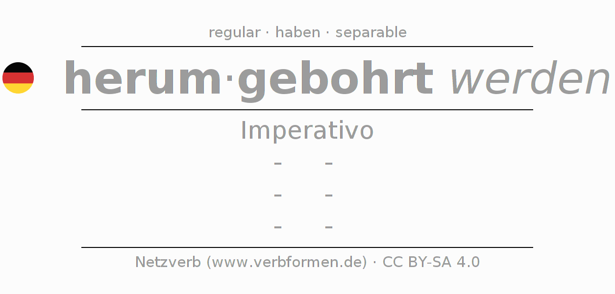 El verbo herumbohren, conjugado completamente en todas las personas y números gramaticales en Imperativo Presente.