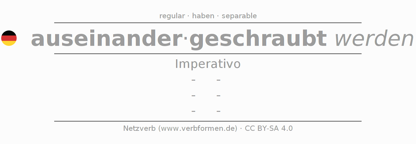 El verbo auseinanderschrauben, conjugado completamente en todas las personas y números gramaticales en Imperativo Presente.