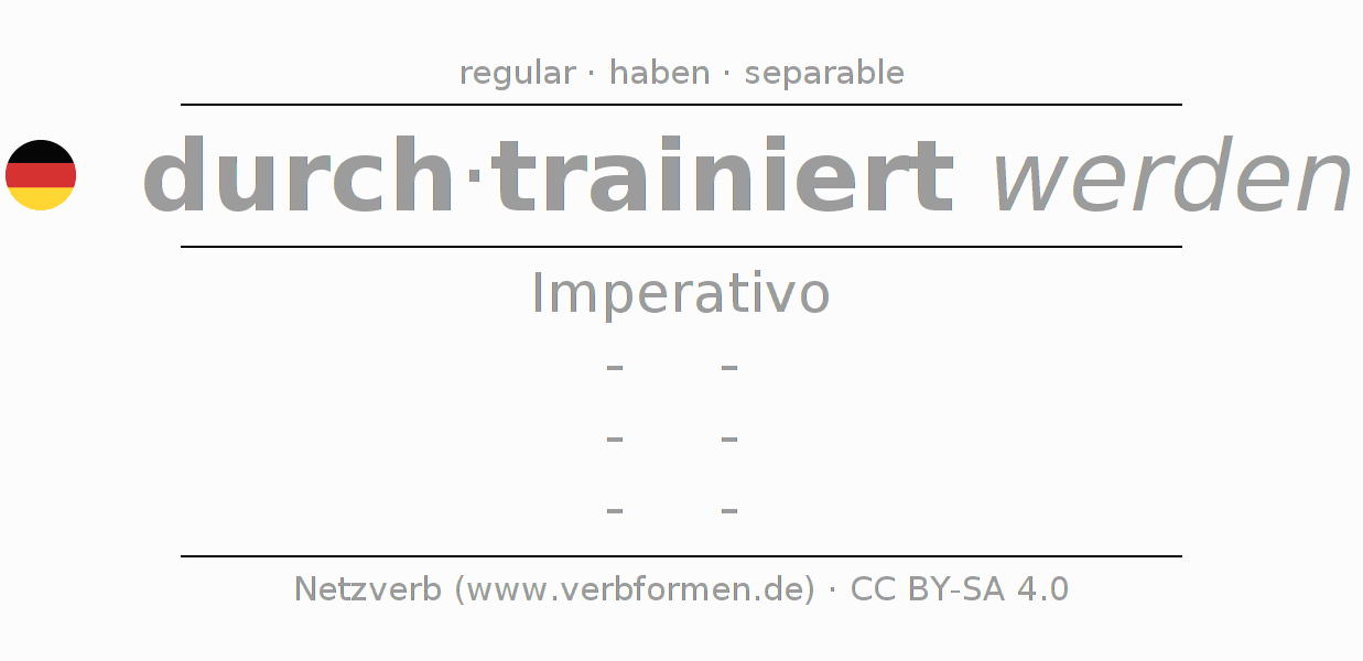 El verbo durchtrainieren, conjugado completamente en todas las personas y números gramaticales en Imperativo Presente.