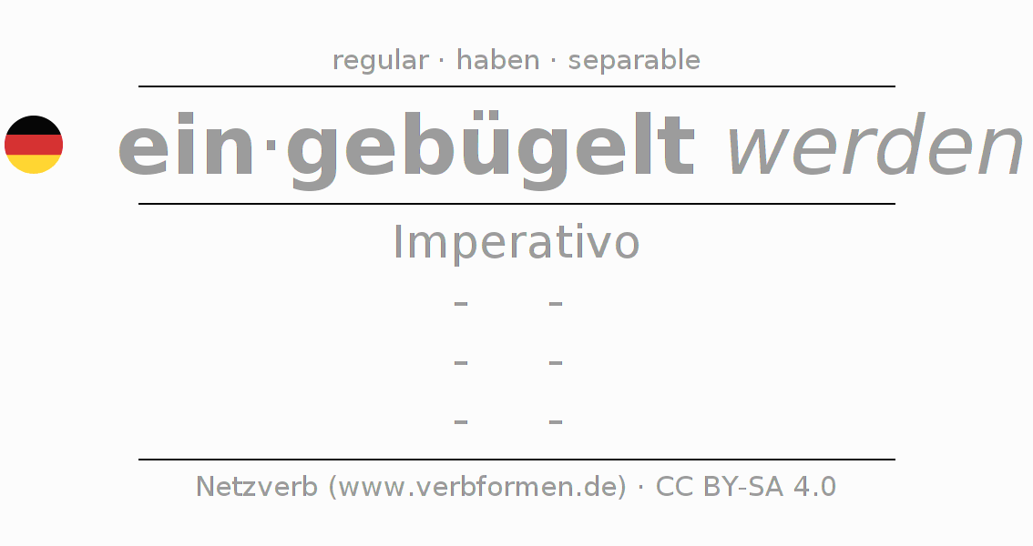 El verbo einbügeln, conjugado completamente en todas las personas y números gramaticales en Imperativo Presente.
