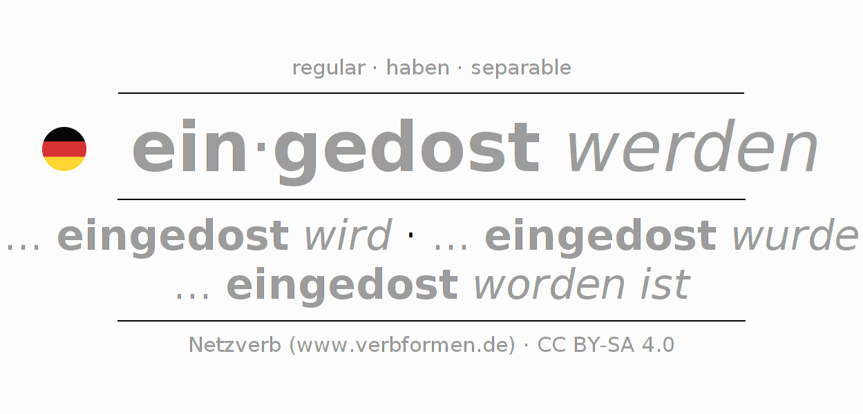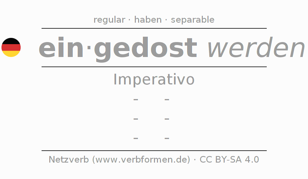 El verbo eindosen, conjugado completamente en todas las personas y números gramaticales en Imperativo Presente.