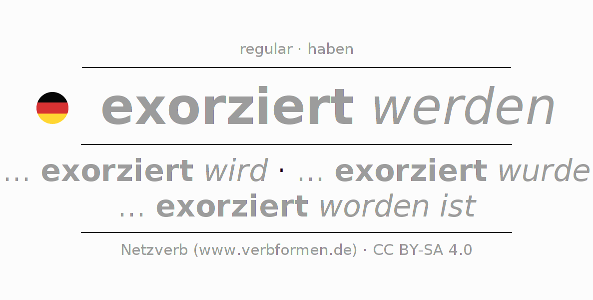 El verbo exorzieren, conjugado completamente en todas las personas y números gramaticales en Imperativo Presente.