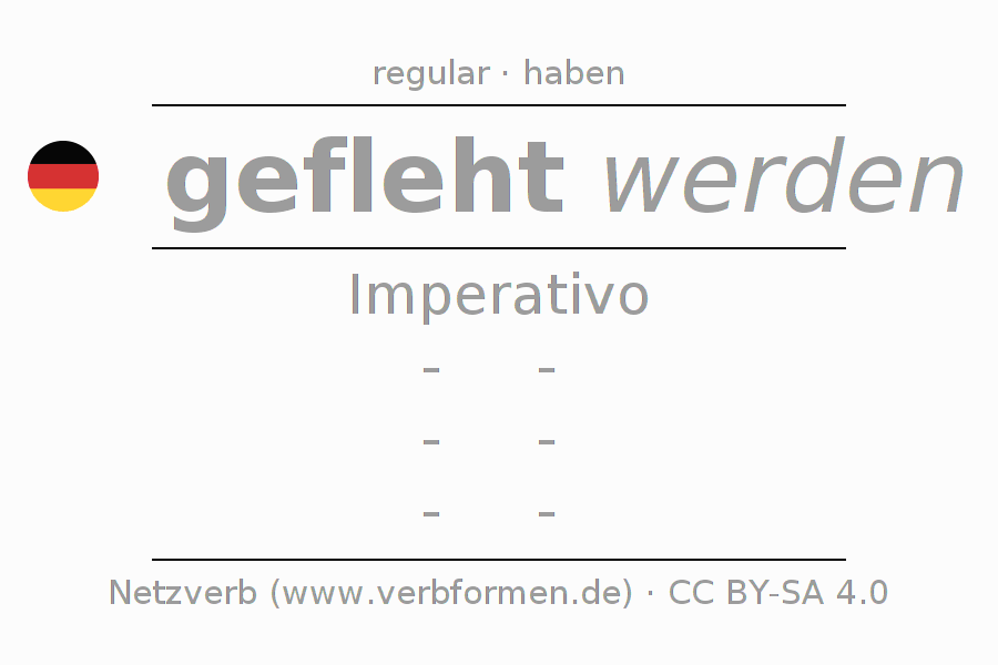 La conjugación de flehen en Imperativo Presente Imperativo Pasivo procesivo es -, -, -, -.Para construir esta formas se requiere seguir algunas reglas gramaticales y también las especificaciones para la conjugación de verbos simples de flehen en Imperativo . Comentarios ☆