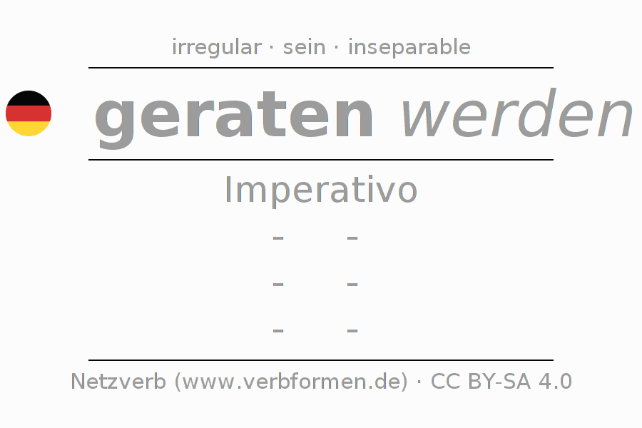 El verbo geraten, conjugado completamente en todas las personas y números gramaticales en Imperativo Presente.