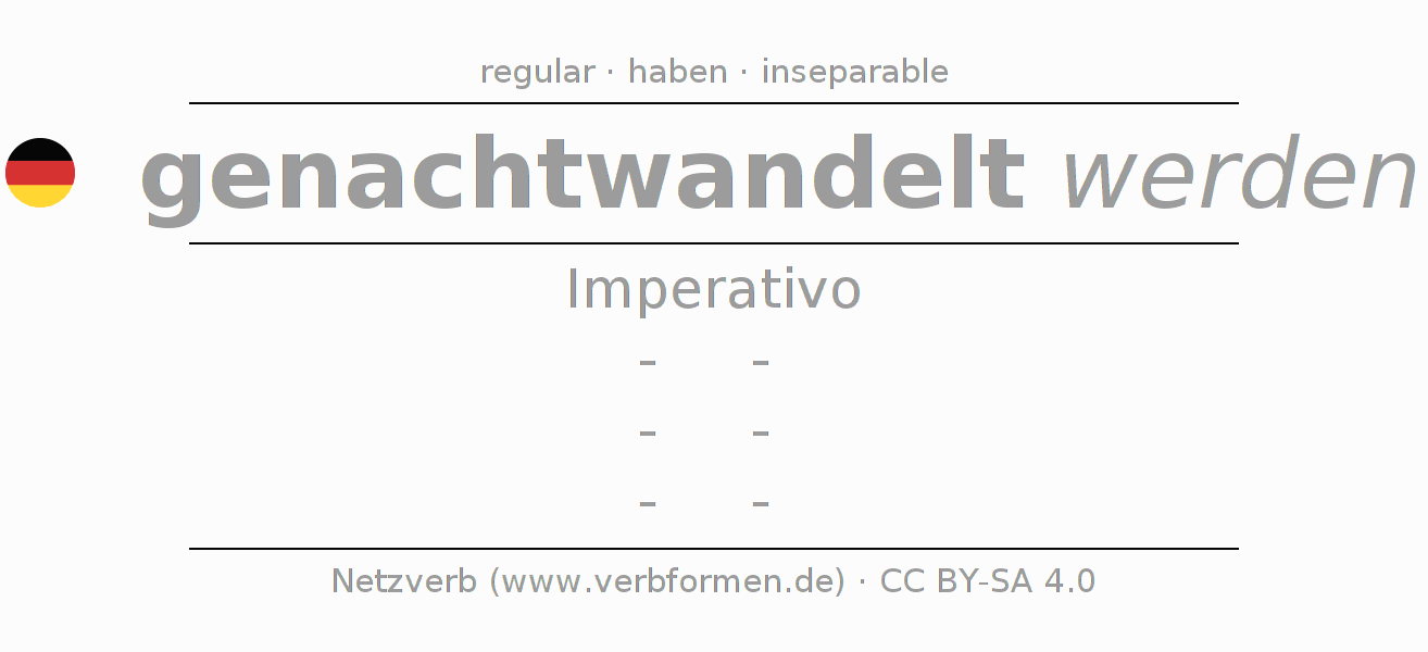 El verbo nachtwandeln (hat), conjugado completamente en todas las personas y números gramaticales en Imperativo Presente.