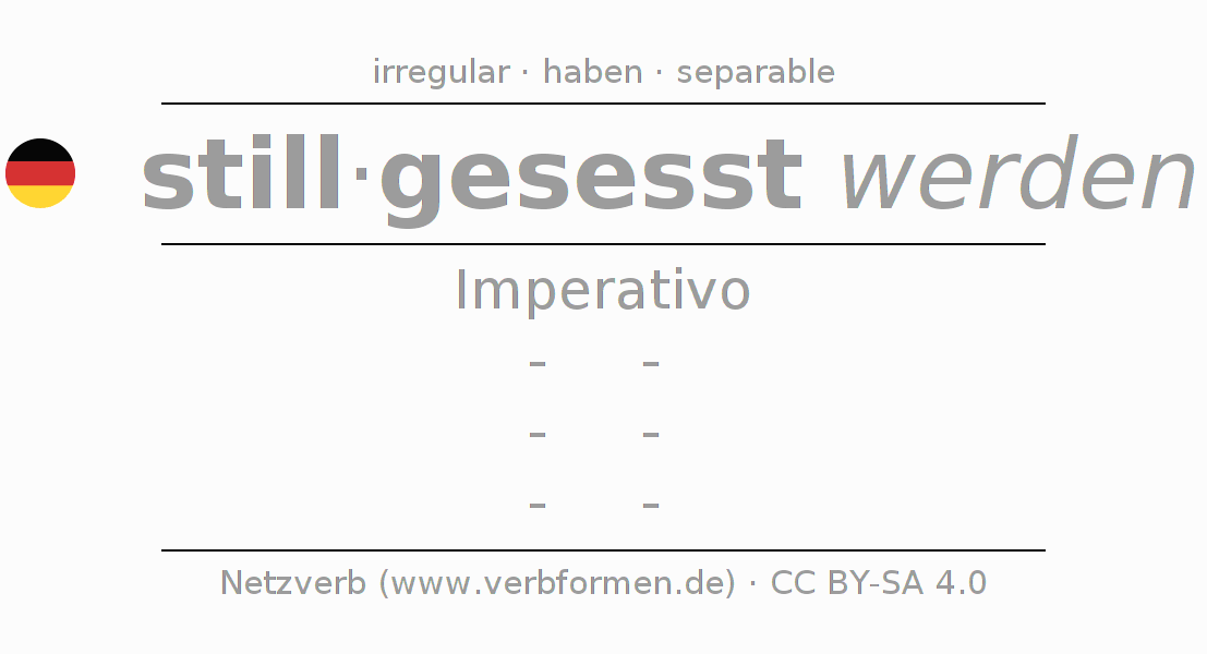 El verbo stillsitzen (hat), conjugado completamente en todas las personas y números gramaticales en Imperativo Presente.