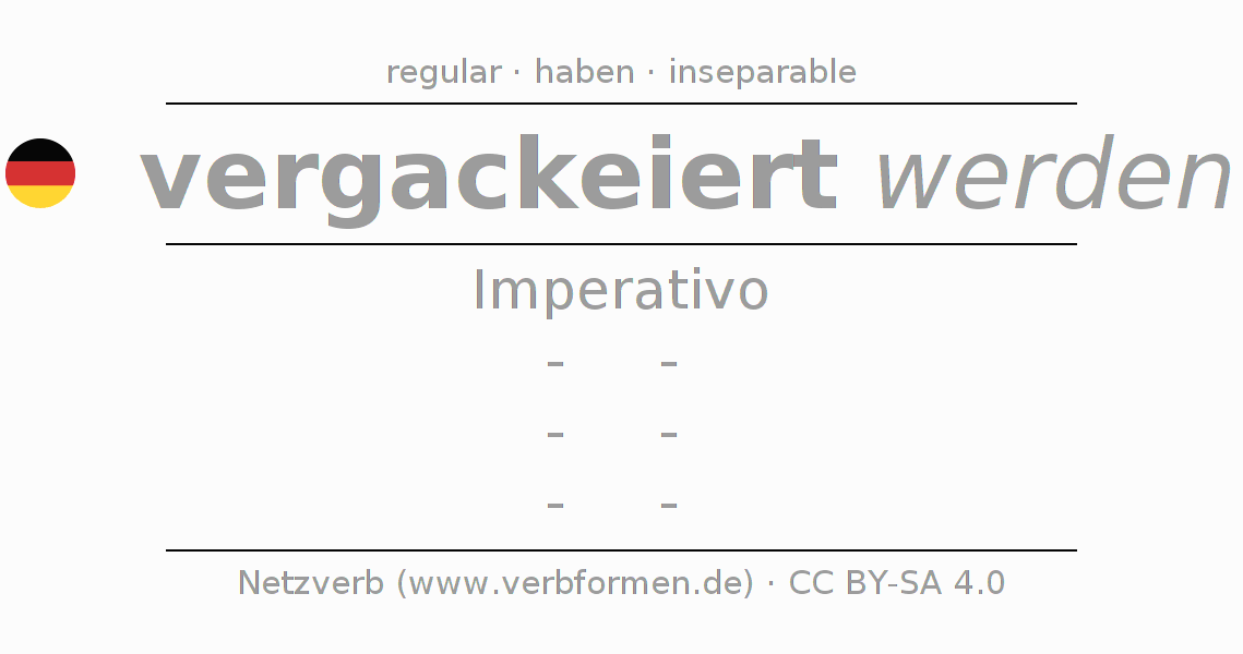 El verbo vergackeiern, conjugado completamente en todas las personas y números gramaticales en Imperativo Presente.