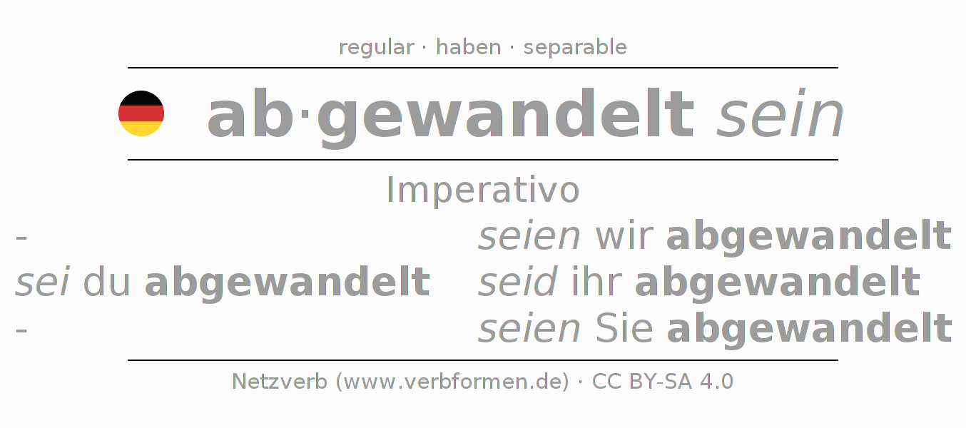El verbo abwandeln, conjugado completamente en todas las personas y números gramaticales en Imperativo Presente.