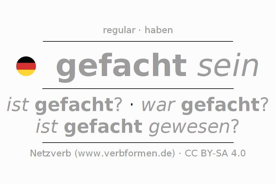 La conjugación de fachen en Imperativo Presente Imperativo Pasivo situativo es sei (du) gefacht, seien wir gefacht, seid (ihr) gefacht, seien Sie gefacht.Para construir esta formas se requiere seguir algunas reglas gramaticales y también las especificaciones para la conjugación de verbos simples de fachen en Imperativo . Comentarios ☆