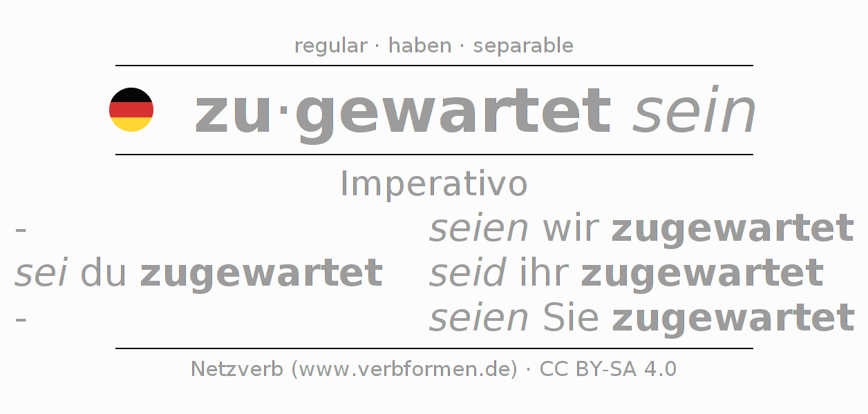 El verbo zuwarten, conjugado completamente en todas las personas y números gramaticales en Imperativo Presente.