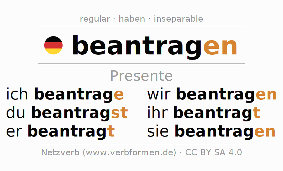 - ¿Cómo se conjuga beantragen en Infinitivo?