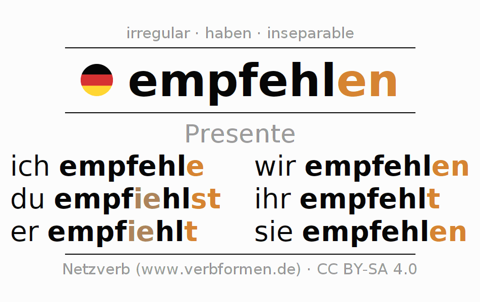 - ¿Cómo se conjuga empfehlen en Infinitivo?