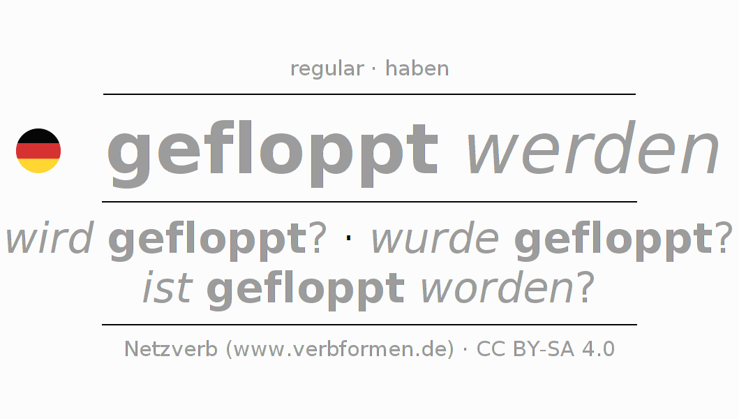 El verbo floppen (hat), conjugado completamente en todas las personas y números gramaticales en Presente Indicativo.