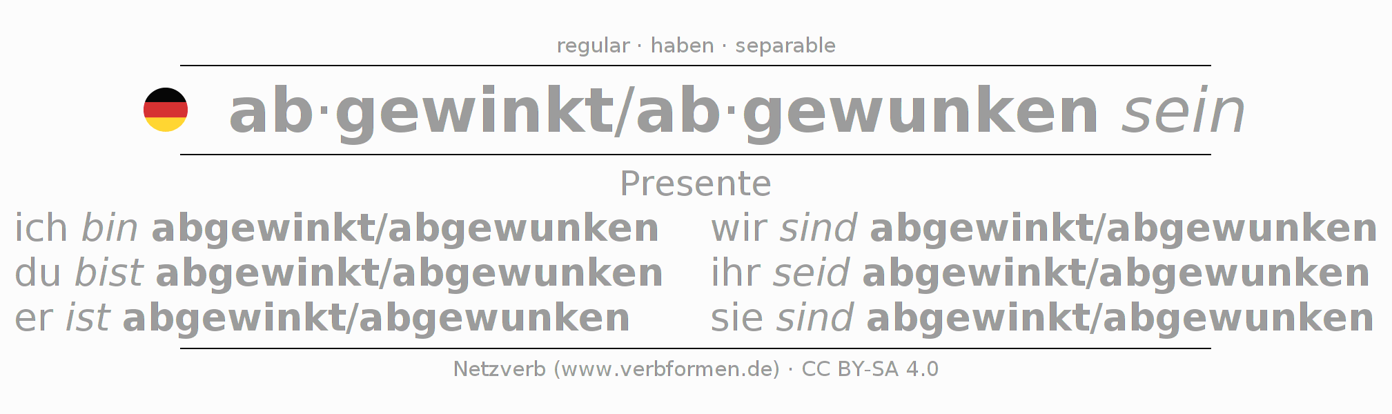| ich | bin | abgewinkt/abgewunken⁵ |