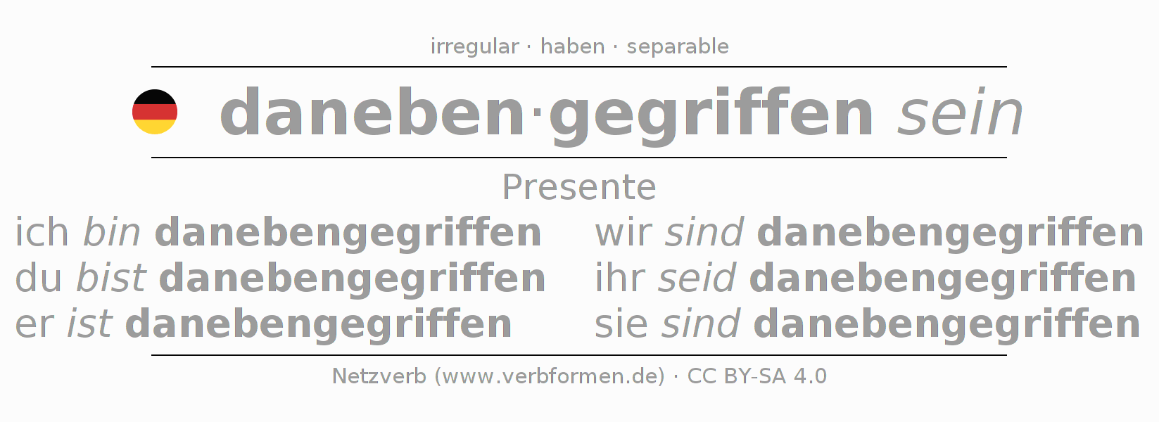 - ¿Cómo se conjuga danebengreifen en Presente?