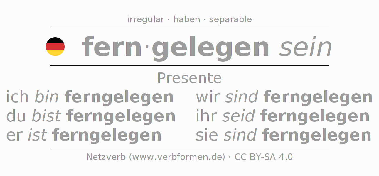 El verbo fernliegen, conjugado completamente en todas las personas y números gramaticales en Presente Indicativo.