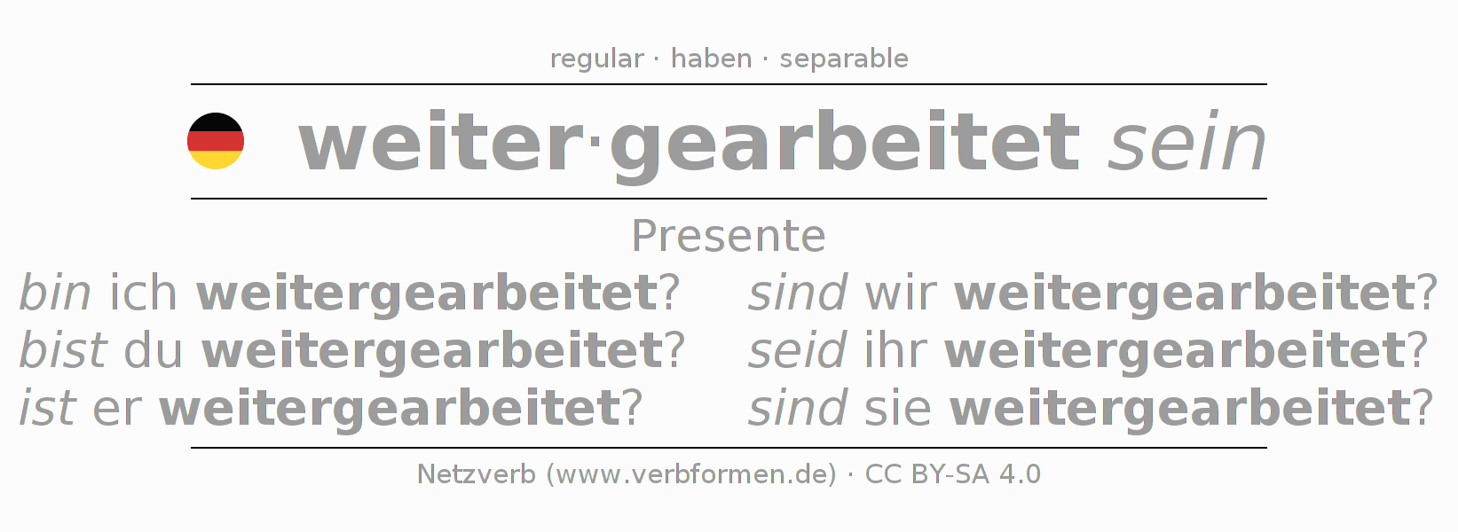 - ¿Cómo se conjuga weiterarbeiten en Presente?