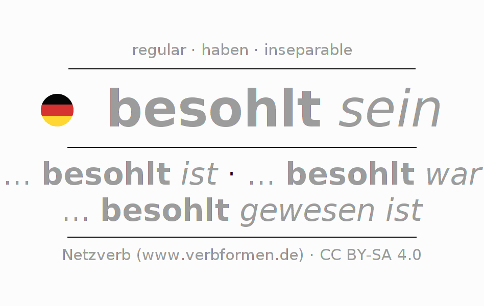 El verbo besohlen, conjugado completamente en todas las personas y números gramaticales en Presente Indicativo.