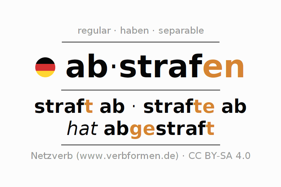 Este verbo abstrafen (castigar, sancionar) se conjuga en pretérito de la siguiente manera: ich strafte ab, du straftest ab, er strafte ab, wir straften ab, ihr straftet ab, sie straften ab