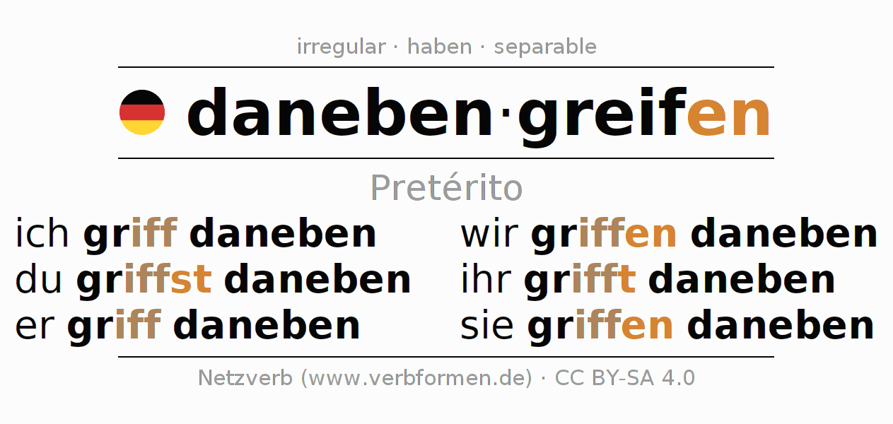 Formas verbales en Pretérito de danebengreifen