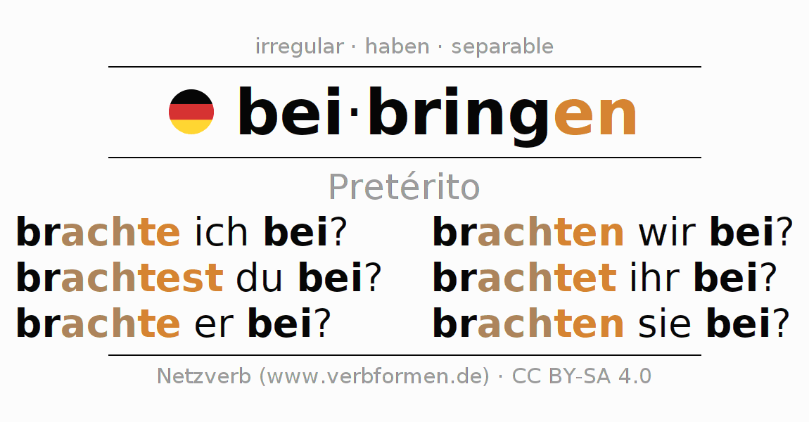 - ¿Cómo se conjuga beibringen en Pretérito?