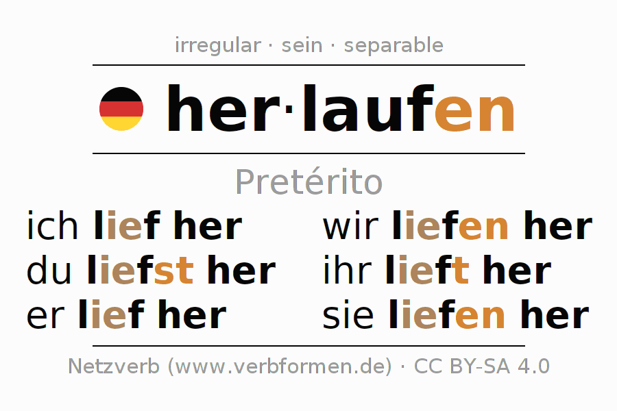 - ¿Cómo se conjuga herlaufen en Pretérito?