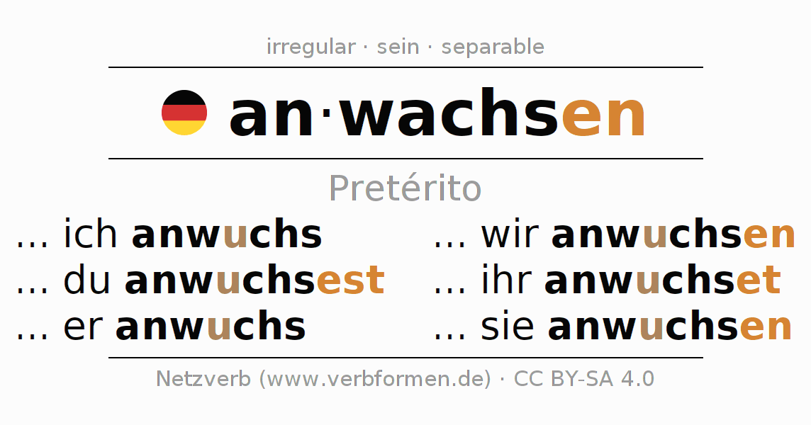 - ¿Cómo se conjuga anwachsen en Pretérito?