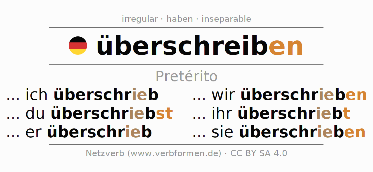 - ¿Cómo se conjuga überschreiben en Pretérito?