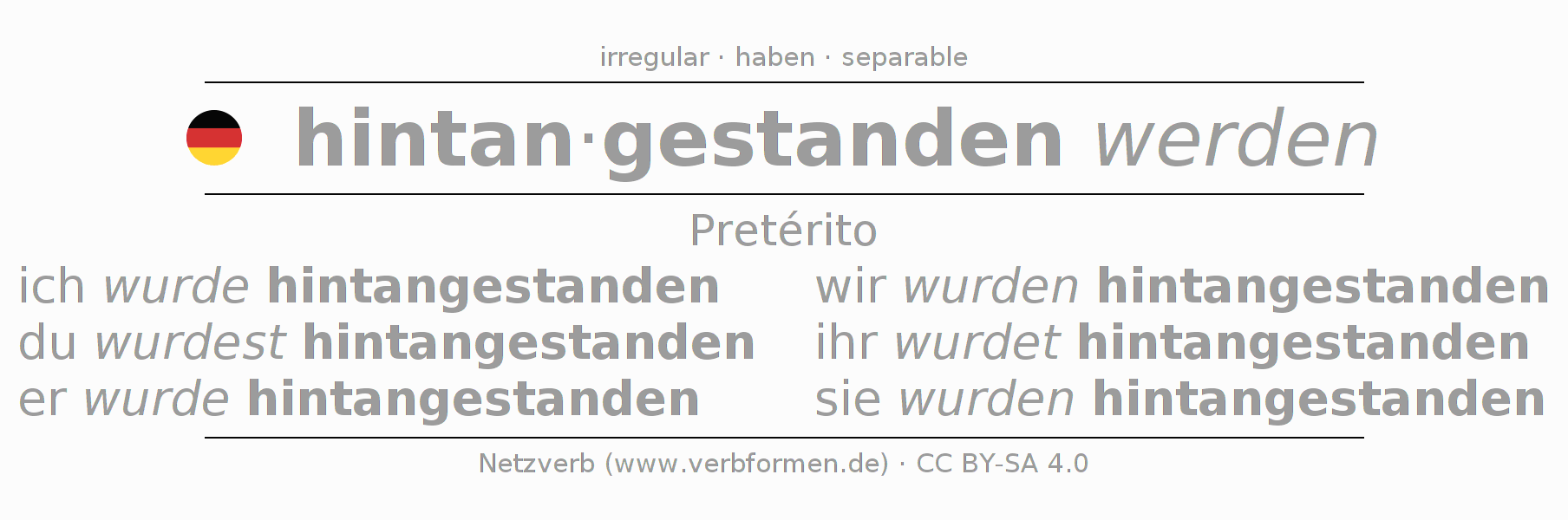 El verbo hintanstehen, conjugado completamente en todas las personas y números gramaticales en Pretérito Indicativo.