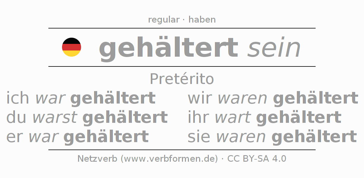El verbo hältern, conjugado completamente en todas las personas y números gramaticales en Pretérito Indicativo.