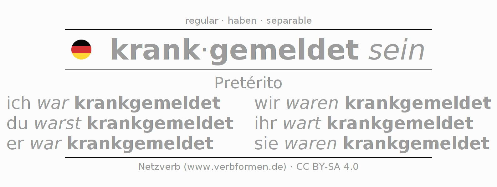 - ¿Cómo se conjuga krankmelden en Pretérito?