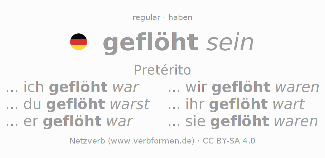 El verbo flöhen, conjugado completamente en todas las personas y números gramaticales en Pretérito Indicativo.