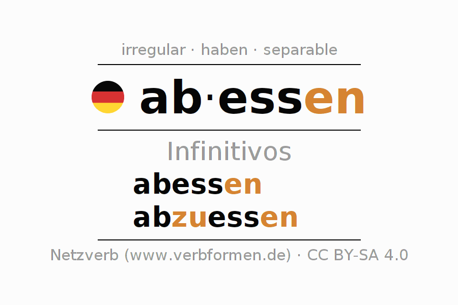 Los infinitivos de abessen (comer, comerse) son: abessen, abzuessen