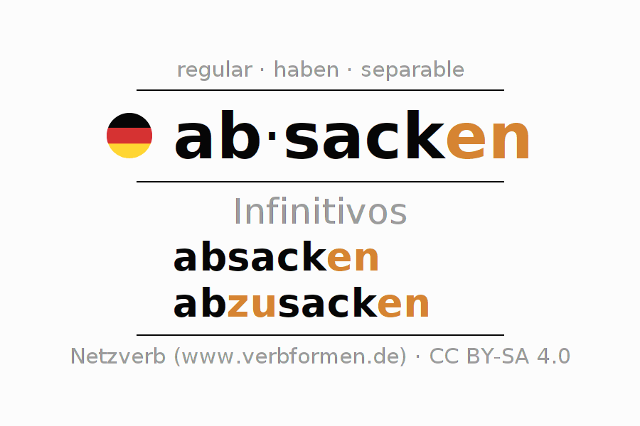Los infinitivos de absacken (ensacar, llenar sacos) son: absacken, abzusacken