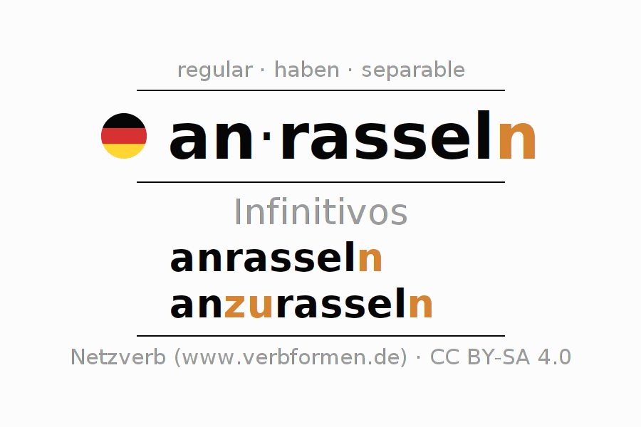 Los infinitivos de anrasseln son: anrasseln, anzurasseln