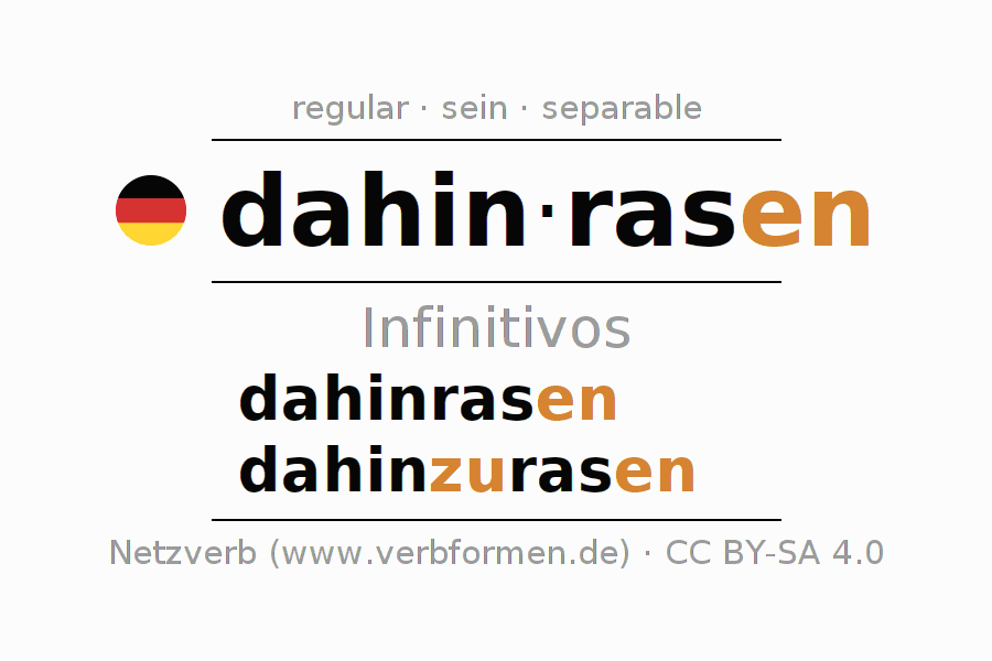 Los infinitivos de dahinrasen (acelerar, ir rápido) son: dahinrasen, dahinzurasen