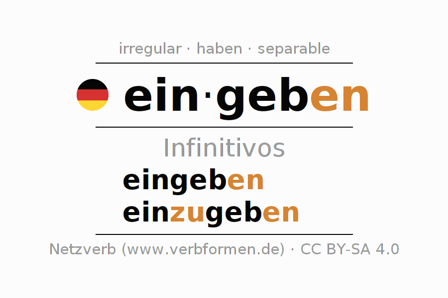 Los infinitivos de eingeben (ingresar, introducir) son: eingeben, einzugeben
