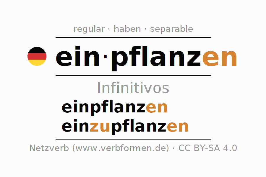 Los infinitivos de einpflanzen (implantar, plantar) son: einpflanzen, einzupflanzen