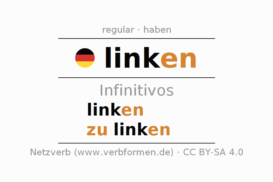 El verbo linken, conjugado completamente en todas las personas y números gramaticales en Infinitivo Presente Pasado perfecto.