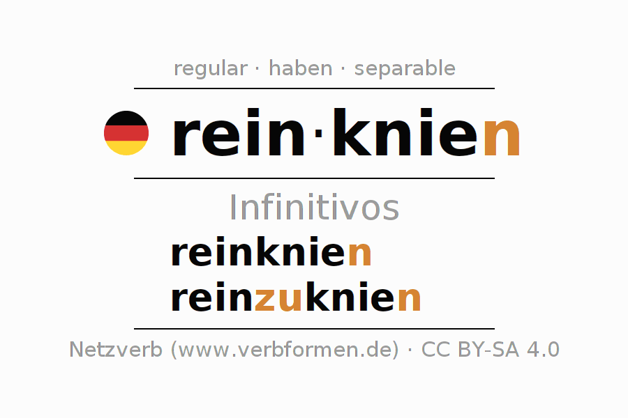 El verbo reinknien, conjugado completamente en todas las personas y números gramaticales en Infinitivo Presente Pasado perfecto.