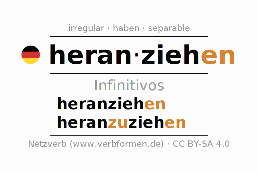 Los infinitivos de heranziehen (acercar, atraer) son: heranzieh(e)n, heranzuzieh(e)n