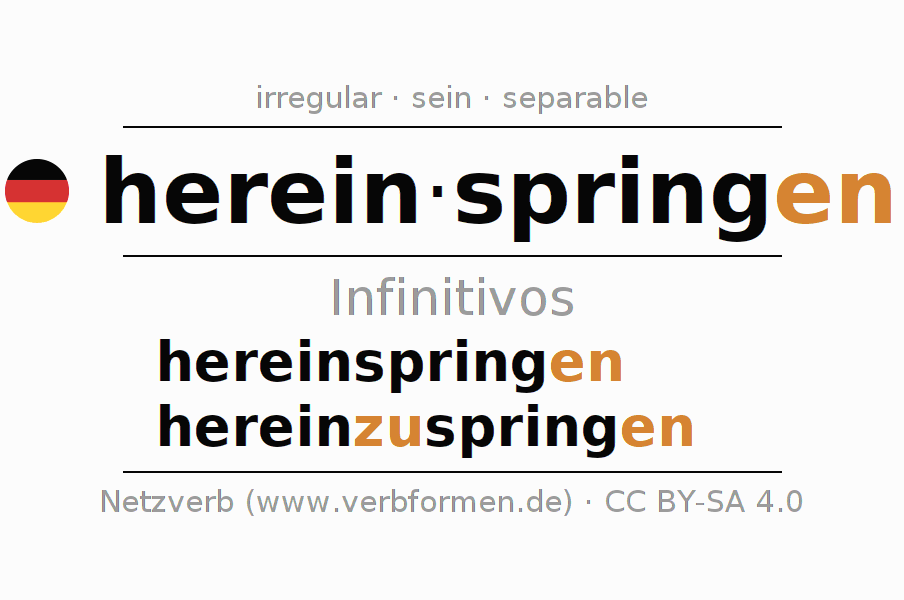 Los infinitivos de hereinspringen (saltar dentro) son: hereinspringen, hereinzuspringen