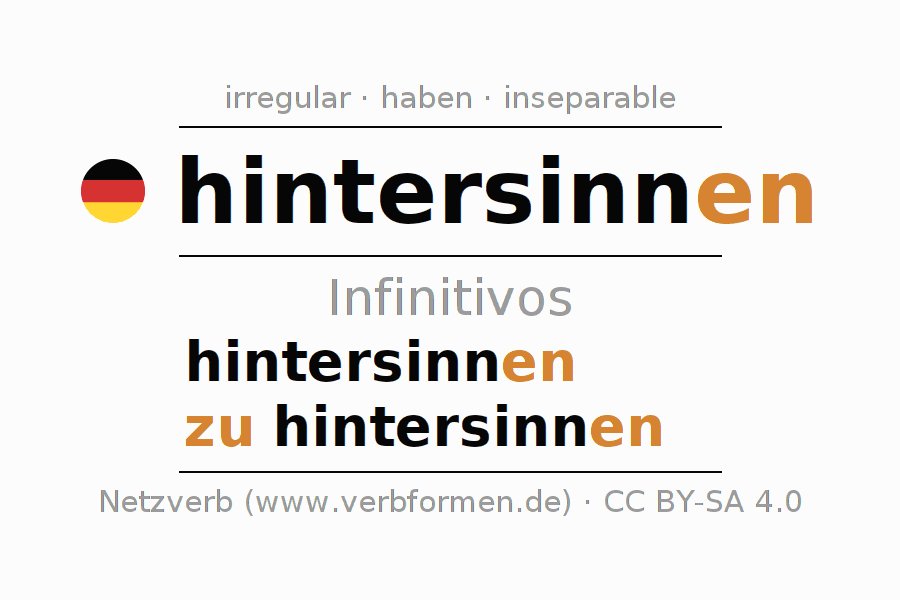 El verbo hintersinnen, conjugado completamente en todas las personas y números gramaticales en Infinitivo Presente Pasado perfecto.