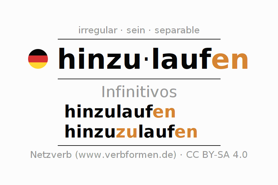 Los infinitivos de hinzulaufen (acudir, acercarse) son: hinzulaufen, hinzuzulaufen