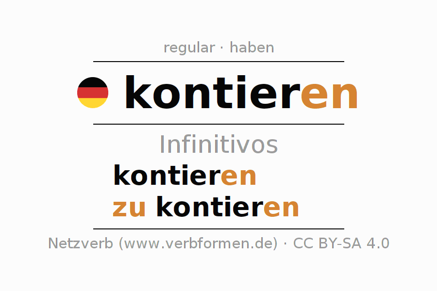 Los infinitivos de kontieren (contabilizar, registrar) son: kontieren, zu kontieren
